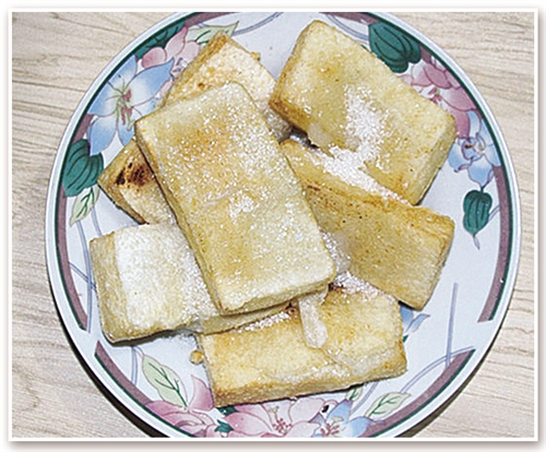 信阳有很多美食,但笔者还是对“糍粑”情有独钟。别看糍粑长相普通,它可是老百姓首选的方便食物。首先是易保存。用冷水把它浸泡在缸里,只要勤换水,就可以保存到来年的夏天。其次是有很多吃法。可以熬粥吃,等粥快煮好时,把几块糍粑放进粥锅,只要一会儿工夫,糍粑即软糯可口;也可以烤着吃;最香的是炸着吃,刚出锅的糍粑糯米香气扑鼻,外酥里软,吃到嘴里特别黏但又有嚼劲。最重要的是只要吃上一小块,马上会有饱腹感。出门在外的打工者总会携带些家乡的糍粑,既能马上补充体力,又能随时尝到熟悉的家乡味道。