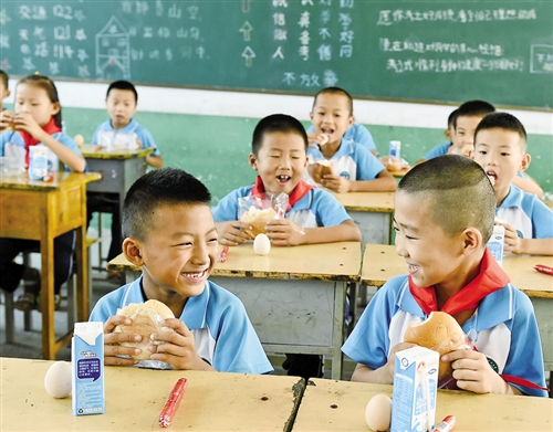 9月6日,国家扶贫开发工作重点县河北广宗县东董里小学学生在吃营养餐。9月起,该县115所农村中小学的2.4万多名学生开始享受营养改善计划。自今年秋季学期开始,河北省进一步扩大学生营养改善计划试点范围,新增24个省级试点,全省所有国家扶贫开发工作重点县实现免费营养餐全覆盖。本报记者 高兴贵摄