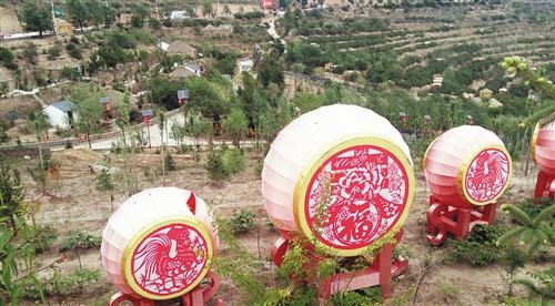窑洞内,宁谧寂静;窗子外,大红灯笼。