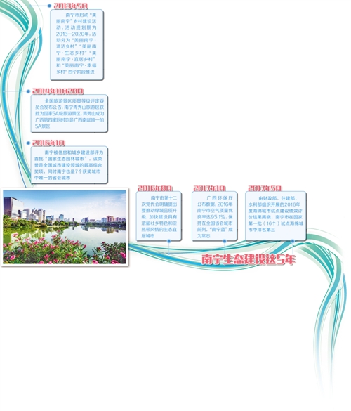 党的十八大以来,南宁市围绕绿色发展理念实施了一系列有益创新和实践,有“绿城”之称的南宁,多次上榜中国十佳宜居城市,并先后摘取了联合国人居奖、国家生态园林城市等多块生态文明建设的“金牌”,绿色发展之路越走越宽广。