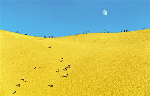 残月沙丘 宋淑钢摄 摄于甘肃鸣沙山。 ▲点评:大漠残月,游人向往。夏日沙漠游成为潮流。 |
