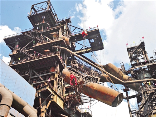 | 2016年钢铁行业压减粗钢产能超过6500万吨,超额完成年度目标任务,2017年将再压减产能5000万吨左右。图为2016年9月,包头钢铁集团炼铁厂拆除2号高炉,压减炼铁产能133万吨。 |