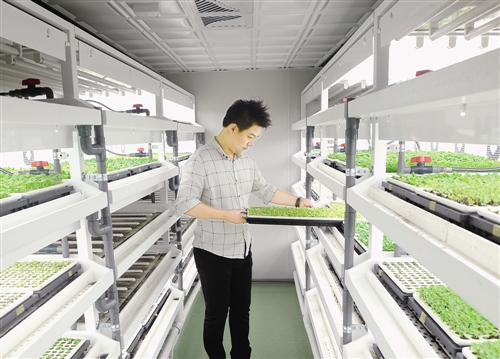 | 双创政策陆续出台,双创环境持续改善,激发各类人群的创新创业热情。图为江苏省返乡农民工运用电力恒温、无土栽培技术培育有机蔬菜苗。 |