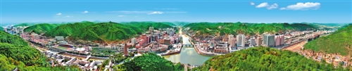 | 推动形成绿色生产生活方式。图为紧紧依偎在群山绿色怀抱之中的陕西省延安市城区。 |