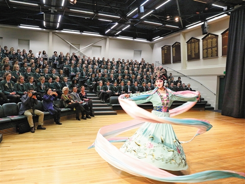 | “2017年中国文化周”走进新西兰校园。中国京剧演员在惠灵顿塞缪尔·马斯丹女校表演。 |