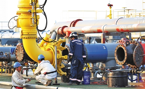| 2017年4月,缅甸马德岛港工作人员对接卸油臂与油轮原油管口,中缅油气管道工程正式运行。 |