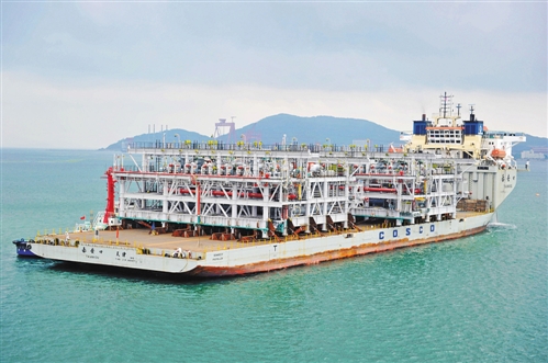 | 2016年6月,装载亚马尔液化天然气项目两个大型液化天然气模块的船只驶离青岛港,启程前往俄罗斯。 |