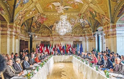 | 中国积极参与叙利亚问题政治解决,出席历次叙利亚国际支持小组外长会。图为2016年5月,在奥地利维也纳举行的各方高级外交代表会议。 |