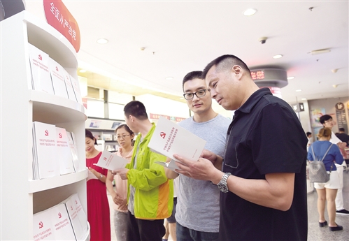| 坚持纪严于法、纪在法前,实现纪法分开。2015年10月,中央政治局审议通过《中国共产党廉洁自律准则》和《中国共产党纪律处分条例》。图为读者在选购准则和条例单行本,该书目前已发行2100万册。 |