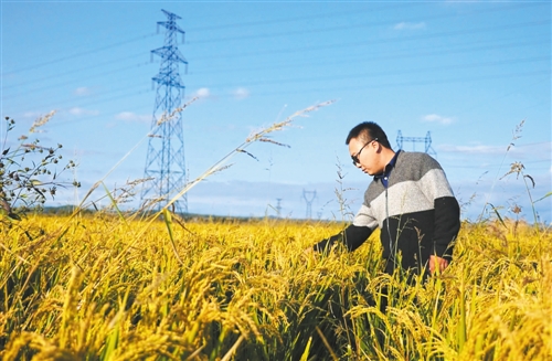 30岁的姜涛站在望不到头的稻田边。这是吉林省吉林市龙潭区江北乡的一个山村,水稻结了沉甸甸的穗,把碧绿的秆子压得直不起腰。远处还有沙沙作响的玉米地,看不到的地方还有一片大豆田。