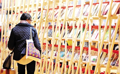 第69届法兰克福国际书展10日在德国法兰克福会展中心拉开帷幕。本届书展的主题为“法兰克福说法语”,主宾国由法国担任,近200名法国作家将出席书展相关活动。本届书展将于15日闭幕。图为一名女子在书展上参观。 (新华社发)