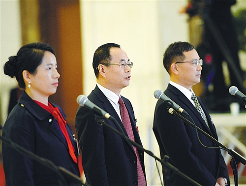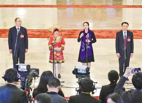 下图 10月19日,北京人民大会堂,党的十九大代表接受记者提问。