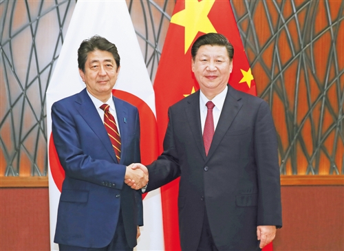 习近平指出,互利合作是中日关系向前发展的动力。新形势下,双方应该提升双边务实合作水平,积极推进区域经济一体化,推动“一带一路”框架内合作尽早落地。双方应该继续在文化、媒体、青少年等领域加强交流,利用两国相继举办奥运会的机会开展奥运合作,增强两国关系发展的民意纽带。