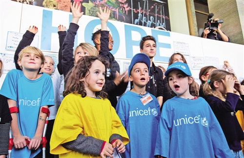 11月20日,在位于瑞士日内瓦的联合国日内瓦总部万国宫,学生们参加世界儿童日活动。 当日,联合国日内瓦总部邀请200名日内瓦中小学学生到万国宫参观和表演,庆祝世界儿童日。 新华社记者