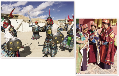 走进孔雀河西岸距普兰县城10公里处的西德村,一位年事已高的老人正在教几位年轻人表演当地传统的歌舞“普兰果尔孜”。这也是国家级非物质文化遗产。由于起源于西德村一带,当地人更喜欢自豪地把这种歌舞叫做“西德果尔孜”。表演该歌舞时有刀有盾,此舞也被称为“刀盾舞”。