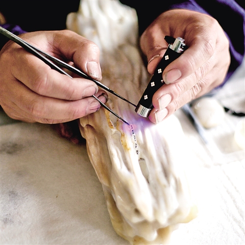 江西金溪县秀谷一小教师邓贡民是抚州市“非遗”传承人。他的“大米微书蜡石镶嵌工艺”是在每粒5到7毫米的大米上,用繁体、篆体、楷体书写2到4个汉字,令人称绝。从15年前开始,一直练到现在,如今47岁的邓贡民用毛笔在裸眼下能写出0.1毫米的字。 汤文朕图/文