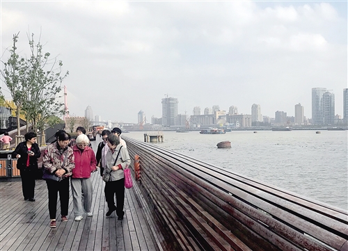 游客漫步在黄浦江杨浦滨江步道上。随着上海徐汇滨江4.5公里龙水南路—徐浦大桥段、上海浦东滨江7公里川杨河—塘桥段的建成,2017年12月31日,上海黄浦江两岸从杨浦大桥至徐浦大桥45公里岸线公共空间正式贯通,2018年1月1日将正式向市民开放。未来,滨江两岸还将建设世界级的滨水公共空间。