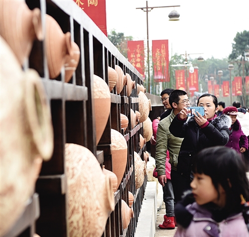 ◀以传承国家级非物质文化遗产“荣昌陶”传统手工艺文化为建设理念的古镇景点安陶小镇在重庆市荣昌区荣昌陶文化创意产业园开街。 唐 奕摄