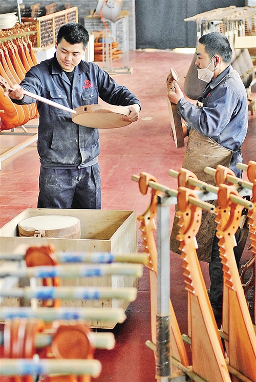 ▶河北省民族乐器生产聚集地肃宁县将乐器生产企业作为发展文化产业的重要组成部分。目前该县年产古筝、琵琶等民族乐器70多万件,产品畅销国内外市场。 杨世尧摄