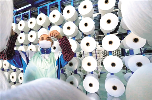 | ▼1月10日,江西乐安县乐康明恒制造有限公司生产车间员工在加紧生产。 谭立华摄 |