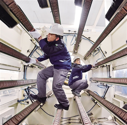 | ▼1月8日,河北廊坊高新区河北泉恩高科技管业有限公司员工在调试设备。新年过后,廊坊市各家企业铆足干劲,开足马力忙生产。 庞 博摄 |