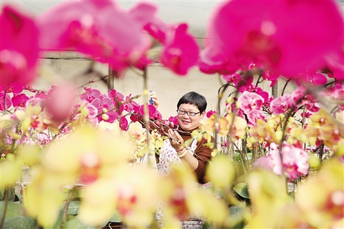 | ▲1月11日,安徽淮北市烈山区洪庄生态园蝴蝶兰基地,近30个品种20多万株蝴蝶兰竞相绽放,迎来销售旺季。 万善朝摄 |