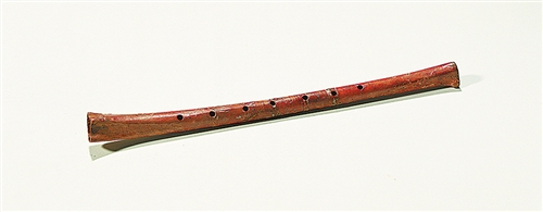贾湖遗址是中国新石器时代早期保存最完整、文化积淀最为丰富的史前聚落遗址。这片古老而神秘的土地上,发掘出土了30多支用鹤类尺骨制成的古老乐器——骨笛,其有5孔、6孔、7孔、8孔之分。经测音得知,它们已具备五声、六声和七声音阶。骨笛的出土证明,早在八千年前,中国先民就已经能够制作出乐器了。