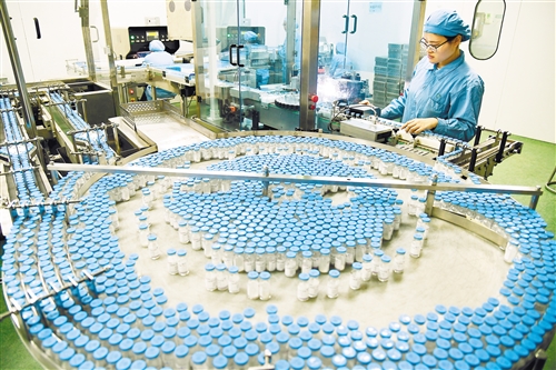 1月25日,在齐鲁制药有限公司济南高新制剂分厂,工人在制剂生产线上作业。“省政府工作报告20多次提到了新旧动能转换”“新旧动能转换是中国之需、山东之急、今后工作之重”……在此间召开的山东省“两会”上,新旧动能转换成为最热门的话题之一。新华社记者 郭绪雷摄