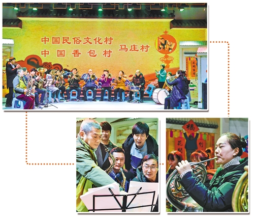 中午,马庄村礼堂传来《在希望的田野上》悠扬的管乐和鸣,村农民乐团团长孟辉告诉记者,乐团正在紧张地排练,为赴北京表演做准备。