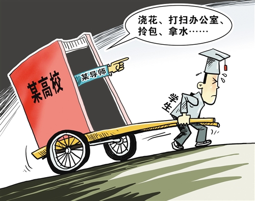 近日,“寒门博士自杀”事件将高校师生关系这一话题带到公众视野之中,并引发人们广泛热议。研究生给导师干活、打杂,甚至成为“贴身小秘书”,读书异化为“打工”,老师被称呼为“老板”,无疑会占用本来该用于学习和科研的时间及精力,也从某种程度上折射出部分导师把学生当成了廉价劳动力甚至工具的问题。这既是对教育本质的违背,也是对学生合法权利的侵犯。解决这类现象,必须加强师德教育,规范教学秩序,加强监督问责,纯净师生关系。 (时 锋)