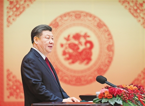 2月14日,中共中央、国务院在北京人民大会堂举行2018年春节团拜会。中共中央总书记、国家主席、中央军委主席习近平发表重要讲话。 新华社记者 鞠 鹏摄