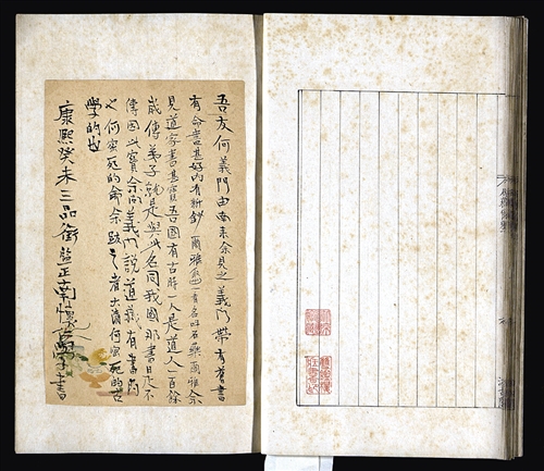 跋以鹅翎笔书写,云:“吾友何义门由南来,余见之。义门带有旧书,有命(名)书,甚好。内有新抄《尔雅》,取出一看,名叫《石药尔雅》。余见道家书甚宝。吾国有古时一人,是道人,一百余岁,传弟子,就是与此名同。我国那书是不传,因此宝。余问义门说:‘《道藏》有书的也’。何密死的命余跋之者,大清何密死的古学的也。康熙癸未,三品衔监正南怀仁学书。”跋中称何焯为“何密死的”,即英文MrHe的汉译拼写,语句亦欠通顺,符合外国人写法。何焯(1667-1722)字义门,博览群籍,长于校勘,康熙四十二年(1703)经李光地推荐,奉召赴京。他大概此时得见南怀仁,请其作跋。落款“康熙四十二年”,与学界公认的南怀仁卒年康熙二十七年(1688)不合,又为研究南怀仁生平事迹的一重要史料。