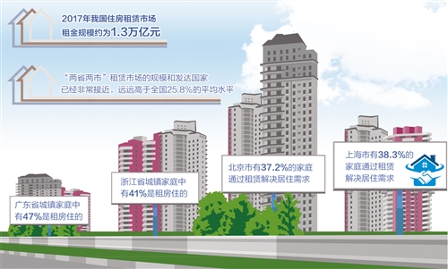作为解决“住有所居”重要途径的住房租赁市场,在2017年实现重要突破。通过资源整合,各地租赁住房供给稳定上升。数据显示,2017年我国住房租赁市场租金规模约为1.3万亿元。