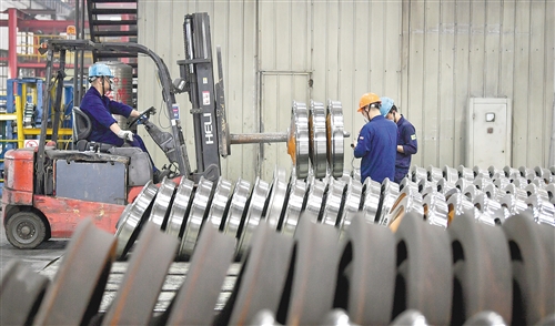 4月27日,工人在河南省信阳市高新区同合车轮有限公司车间内生产。