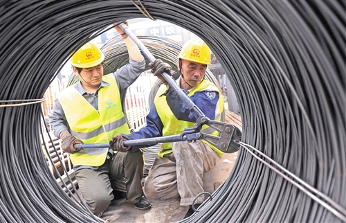 5月3日,北京地铁19号线牡丹园站施工现场,两名中铁七局工作人员正在紧张施工。目前,19号线一期所有车站及区间已实现进场施工,车站主体结构完成总工程量的18.5%,整体施工进展顺利。
