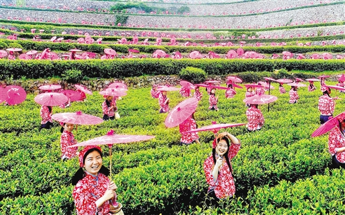春季出游看景,也是欣赏和体验地方文化的好时候。江苏太仓农民舞龙队在油菜花花海间表演舞龙。丝竹、山歌、快板说唱等多样的文艺,不仅丰富了农民的精神文化生活,也让游客们体会到了浓郁的乡土气息。眼下是春茶采摘期,安徽省舒城县“九一六”茶园一派生机。茶产业本身横跨一、二、三产业,旅游产业则综合带动力强,以茶兴旅、以旅促茶,茶旅融合这种新模式,既是茶资源综合利用的新方式,也是很受欢迎的旅游新业态。