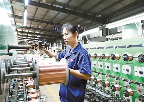 5月21日,江西上饶市横峰县经济技术开发区百川电导体有限公司,员工在加紧生产。近年来,横峰县不断推动有色金属产业链延伸和转型升级,工业经济呈现快速发展势头。