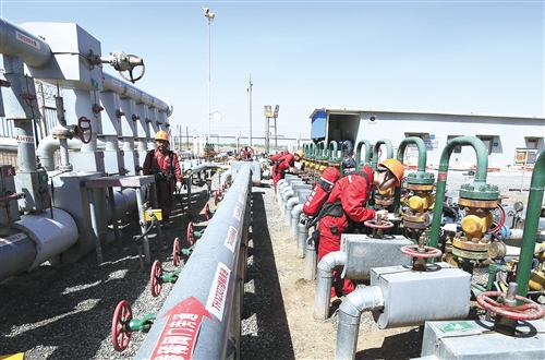 5月25日,位于新疆轮台县的西北油田采油二厂员工在录取单井生产进站压力和掺稀油量数据。日前,西北油田采油二厂“注氮气+掺稀”井进计转站技改项目投产成功,实现了安全、环保、增效三丰收。胡 强摄