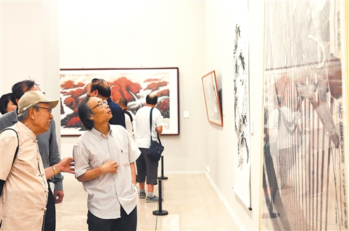6月2日,观众在北京中国美术馆欣赏美术作品。当日,江西美术作品学术邀请晋京展暨“魅力红谷”改革开放四十周年美术成果汇报在北京中国美术馆开幕。