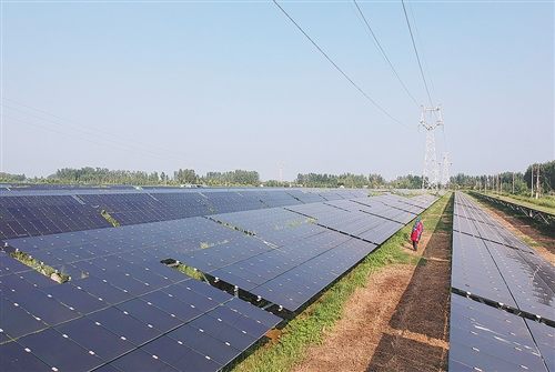 端午假日期间,国网山东禹城市供电公司工作人员来到当地发电企业建设的光伏电站开展设备巡视,帮助光伏发电企业在夏季用电高峰到来前消除安全隐患。禚商明摄