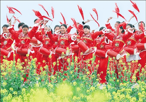 《腰鼓闹春》 摄于江苏省盱眙县维桥乡维才村。 周海军摄 ◀点评:火红的腰鼓在油菜花田间擂响,饱满的色彩与喜庆的动感交相辉映。 |