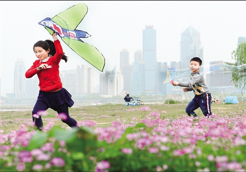 《奔向未来》 摄于江西省南昌市红谷滩新区赣江西岸观光带。梅 蓉摄 ◀点评:儿童、风筝、前景的繁花与身后的城市,宣告着春天的来临,预示着美好的未来。 |