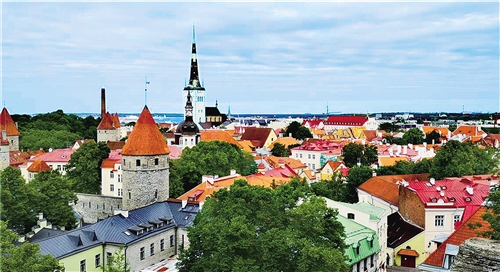 如今的塔林,老城依然严守着历史的装束,保持着中世纪的格调,却又很难得地没有因为战火而失去色彩。一大片白墙红顶、高矮参差错落有致的房屋,间或一个个突起的墨绿色尖铜顶高耸入云,仿如儿时的积木城堡,有了一种童话般的浪漫纯真,让人忘记了这座城市的年龄。