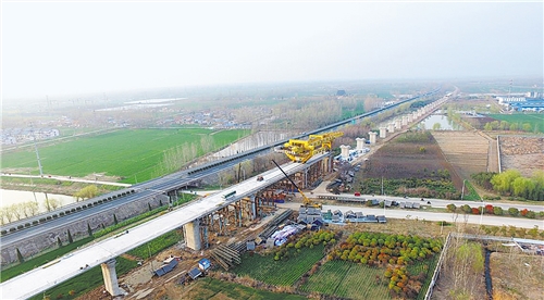 7月12日,由中铁十六局集团五公司承建的连(云港)镇(江)铁路涟水制梁场最后一孔箱梁架设完成,标志着项目部圆满完成箱梁制运架任务。连镇铁路是国家重点基础设施建设项目,建成后将成为江苏省连接苏北、苏中、苏南地区的南北纵向主通道。许鹏健摄