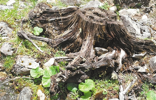 据丽江市森龙实业公司董事长和立文回忆,当时进山的人要么是去砍木头,要么是为砍木头服务,围绕着砍木头形成了完整的产业链。林区公路四通八达,运输车辆进出穿梭,十分热闹。时至今日,迪庆州香格里拉市虎跳峡镇红旗村的山坡上还残留着一排排伐桩。