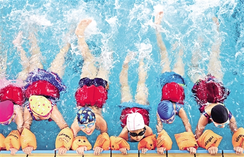 小朋友们在河北省廊坊市安次区一家游泳馆内学习游泳,尽享夏日清凉。 新华社记者 王 晓摄