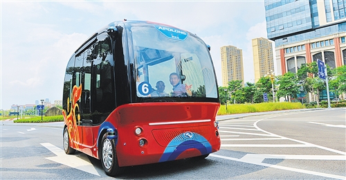 近日,一台名叫“阿波龙”的无人驾驶小型巴士在厦门软件园三期亮相。这台外形“呆萌”的无人驾驶巴士身长4.3米,宽2米,满载时能容纳14人,可自动完成变道和转弯等操作,车内没有配置方向盘和驾驶位,吸引不少市民登车体验。 (新华社发)