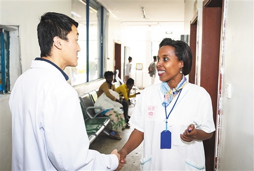 8月20日,在埃塞俄比亚首都亚的斯亚贝巴的中国—埃塞俄比亚友好医院,张天鹏正在与当地医护人员交流。2017年8月29日,河南平顶山市的普通外科副主任医师张天鹏开始了为期一年的援非医疗队生涯,为中非友好合作贡献了自己的力量。