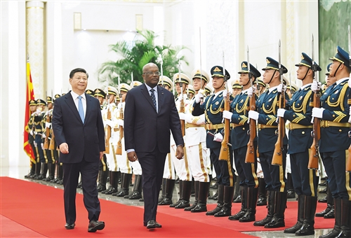 会谈前,习近平在人民大会堂北大厅为卡博雷举行欢迎仪式。彭丽媛、丁薛祥、杨洁篪、白玛赤林、王毅、何立峰、刘新成等参加。
