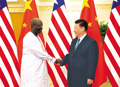 9月1日,国家主席习近平在北京人民大会堂会见利比里亚总统维阿。 新华社记者 张 领摄 |